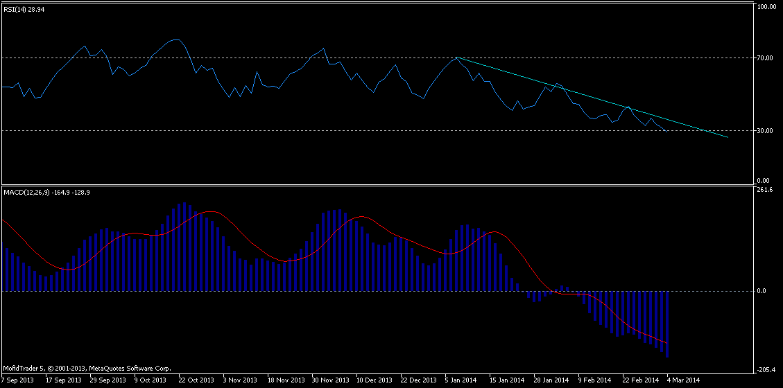 همچنین در خط روند رسم شده RSI بیانگر این است که نمودار تمایلی برای شکستن این روند نزولی ندارد.