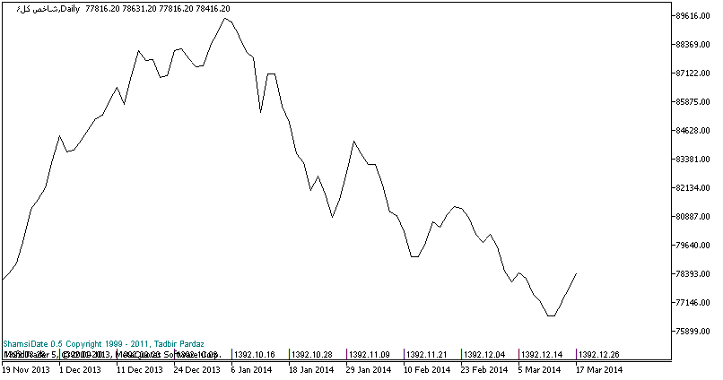 در زیر نمونه ای از نمودار خطی مربوط به شاخص کل در بازه ی روزانه دیده می شود